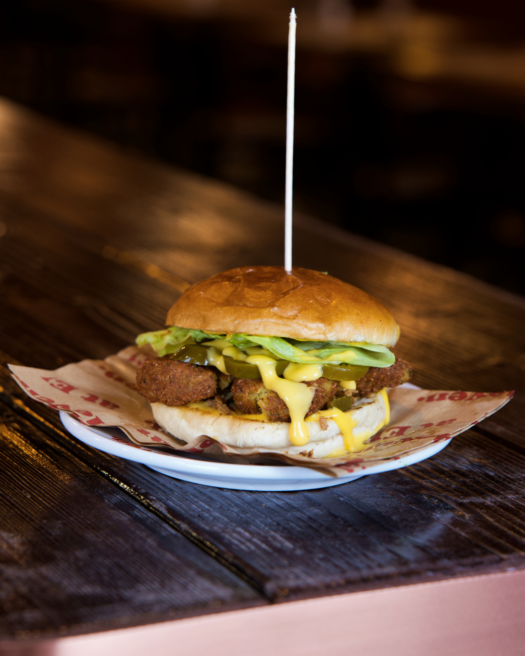 Doppelt Beef, Irish Cheddar, karamellisierte Zwiebeln, eingelegte Gurken, Bacon, Ketchup-Mayo